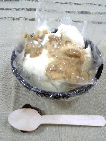 よかったよかった。 で、風邪をひいたとなると、ケーキが食べたくなるわけですが、 今回はちょこっと変わったケーキを発見! ジャカジャーン! と、撮影前に、空中一回転をしてしまったので、 若干グチャグチャになってしまいました(´・ω・`)ォョョ。。。 さて、これが豆腐のケーキ(by.SHOTANI)なのです。 豆腐メイン、上にのってるのが、キャラメルバナナソース。 豆腐の下敷きになってるのが、生クリームとスポンジ。さらに黒豆。 最初は豆腐???え?え??え??? と、かなり「?」マークを多用してしまいましたが、 購入して、まず豆腐のみを食べてみると、豆腐自体が少し甘い感じ。 そして、キャラメルバナナソースと生クリームとスポンジを同時にパクつくと、 ウマーーーーーーーーイ!!Σr(‘Д‘n) かなりの衝撃を覚えつつ、風邪にはピッタリなデザートでした。 食べ終わったあと、残った黒いザルはおやつカゴに早変わり。 おやつ食べ過ぎ(*゚Д゚)/ダー゚+。 追伸 眠いので、コメントレスはまた次の機会に・・・<(_ _)> |