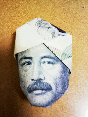 ターバン野口はなかなかイイですね!インド料理屋でナン焼いてそうです。 夏目さんは…うん、ハタキですね。もちろんたすき着用でお願いします。 折ってみようと財布を開いたら、千円のピン札が一枚っきり…(:β)rz 私には、オマエを折りたたむ勇気はないよ! あ、うけました?w