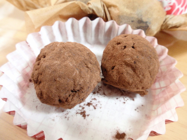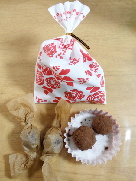 仕事中でもスロットだけは回してますよw(オイ さて、そのニコッとタウンでお知り合い(?)になった方が、 チョコ菓子のレシピを紹介されていたので、 ま、バレンタインだしおいらが食べたいのでw その中からホットケーキで作るトリュフを作ってみました。 レシピは簡単に言うと、ホットケーキを焼いて粉々にして、 湯煎で溶かしたチョコレートに生クリームを入れ、 さらにその中に粉々にしたホットケーキを入れて混ぜる。 (ここでおいらはキャラメルクランキーを入れてみた。) それを丸めて冷やして、最後にココアパウダーをまぶして完成。 て感じで、超簡単b で、夜中にコソコソと作りあげたのがコレ↓ 箱をわざわざ買ってくるのが面倒だったので、 クッキングシートでキャンディー包みにしてみました。 でも、この包み方だとせっかくのココアパウダー感がなくなるのだw でも食べたら関係ないから、おいら的にはかまわないww で、出来上がったのを試食してみた。 うーん美味しいんだけど・・・クランキーでサクサク感も出したかったんだけど、 どうやら量が少なかったのか、思ったほどサクサクしなかった(´・ω・`)ショボーン でも甘すぎず、味が美味しいからいっかw 本当は余計に作って、握り拳ぐらいの大きさのも作りたかったんだけど、 材料が足りず、しかも夜中に作ってたもんだから、今年は諦めたわw また次回、何か作る時に挑戦してみよう(・∀・) 新年あけましておめでとうございます。